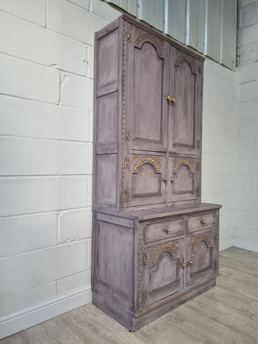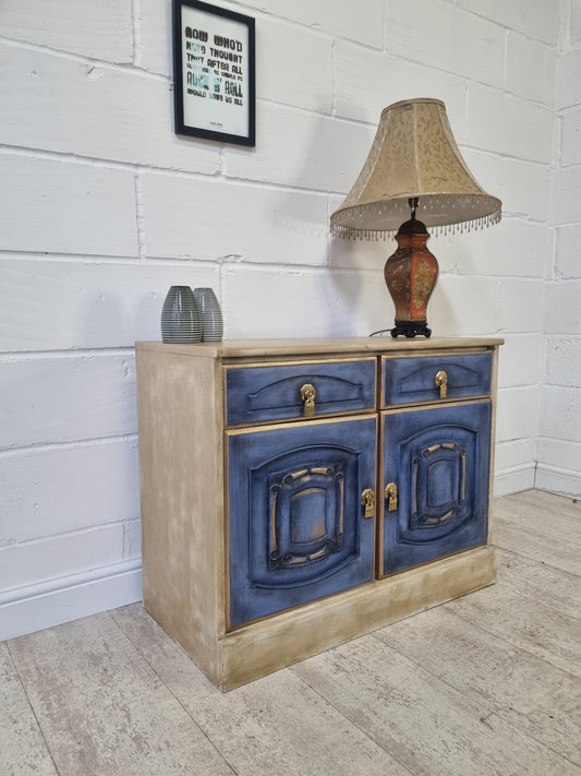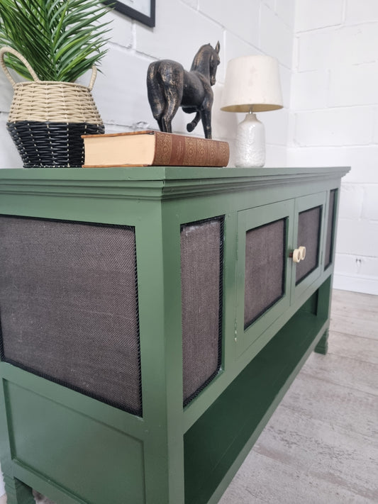 Hand Painted Vintage Cabinet – Upcycled Drinks Cabinet with Lights & Wallpaper Interior